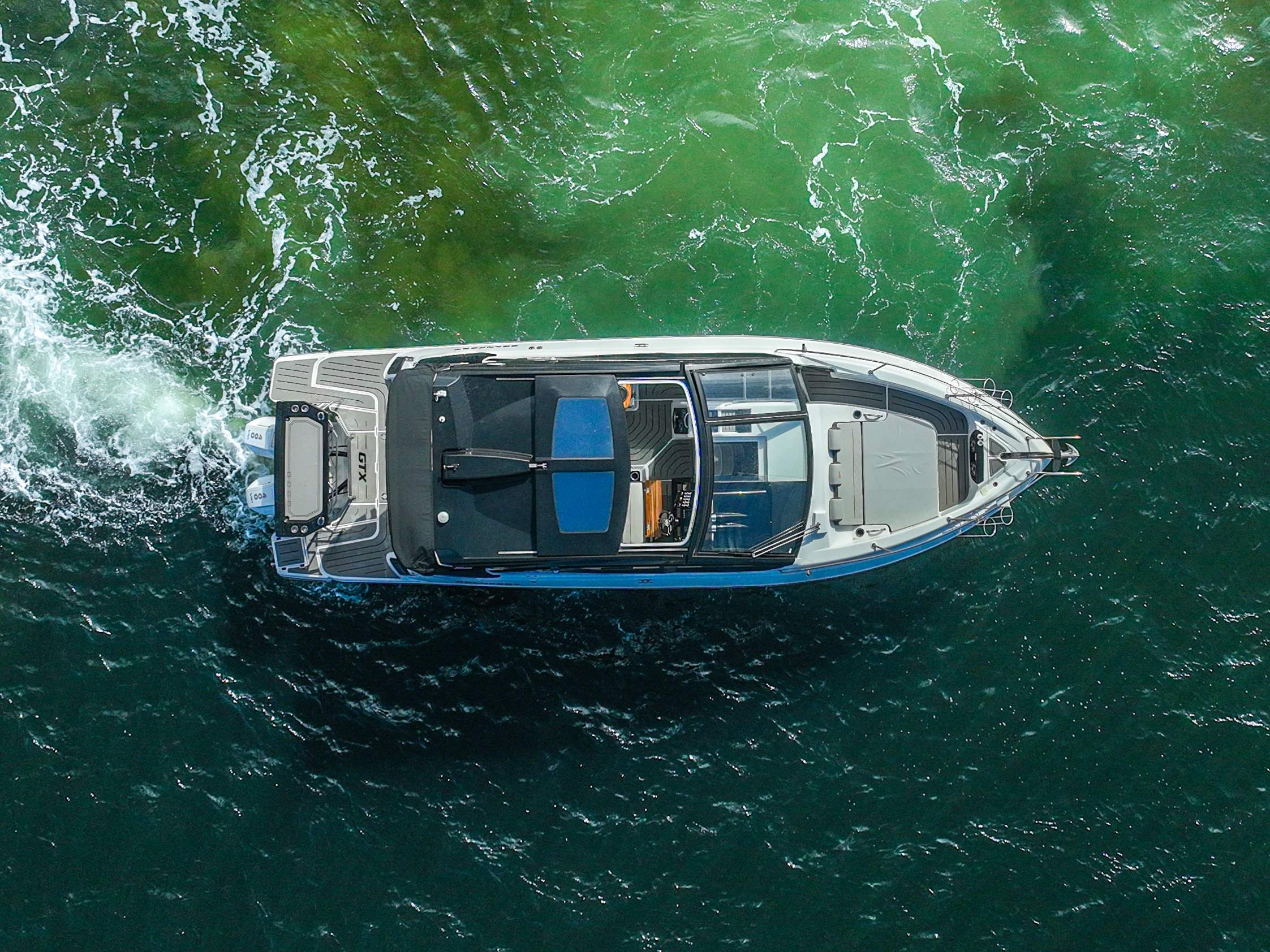 Feel the wind on your face on board the 300 GTX with its accessible lowered bow. This section features a sound console, ample handrails, and a passage designed with exemplary safety in mind.